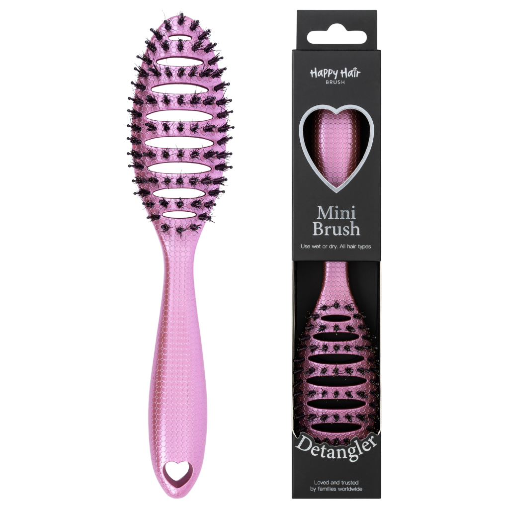 The Happy Detangler Mini 2.0 in Pink is powerful enough to tackle the toughest knots and gentle enough for the most delicate scalps. Whether it's little hands learning to brush or older hands needing something easier to hold, this compact hair brush is designed to fit life at every age and stage.